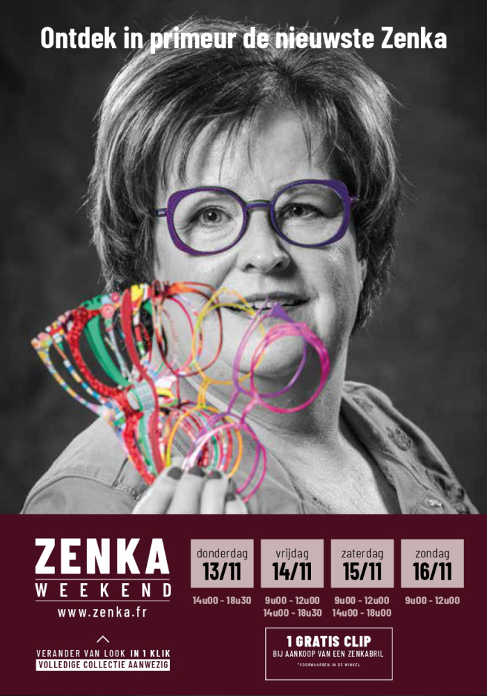 Tijdens dit weekend ontvang je 1 gratis clip bij aankoop van een Zenka-bril (voorwaarden in de winkel).