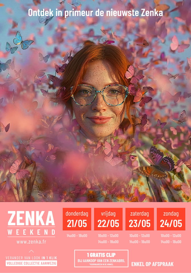 Tijdens dit weekend ontvang je 1 gratis clip bij aankoop van een Zenka-bril (voorwaarden in de winkel).